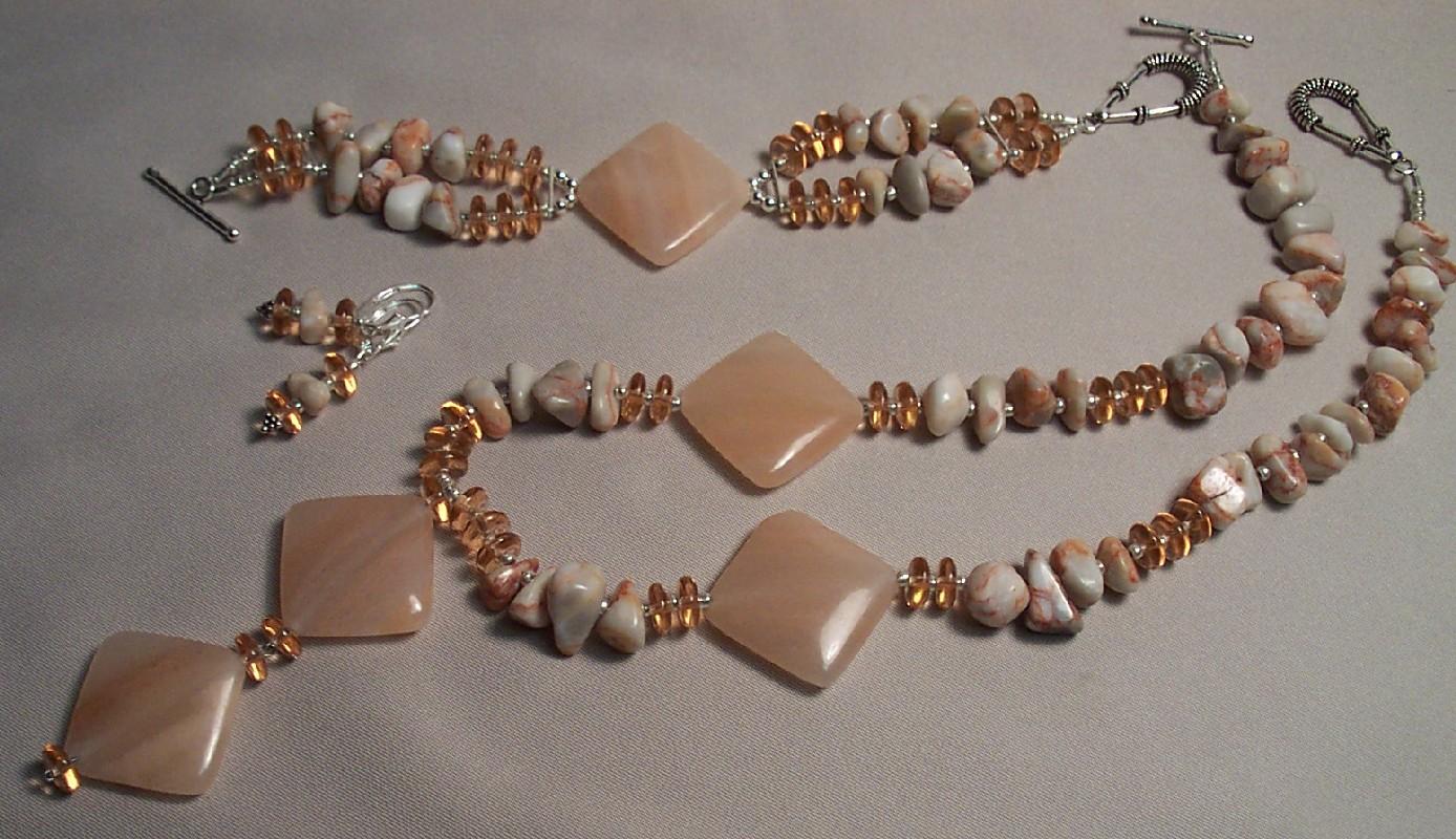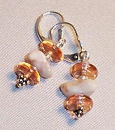 Center amazonite 25mm square, rondelle 8mm glass, irregular chips. Leverback earrings. Sterling