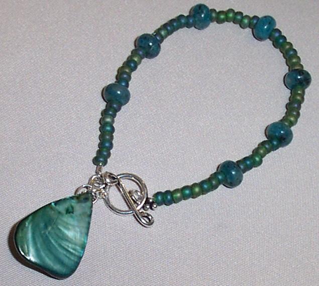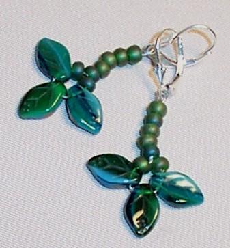 Center shells 27/20mm, Czech glass leaves 5/10mm, 8/5mm rondelle, glass bugle beads. Leverback earrings. Sterling.