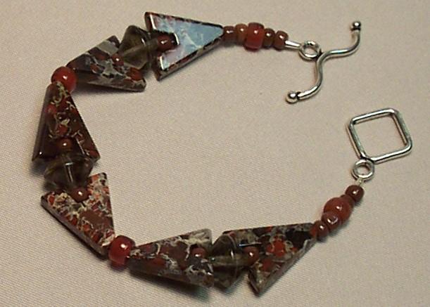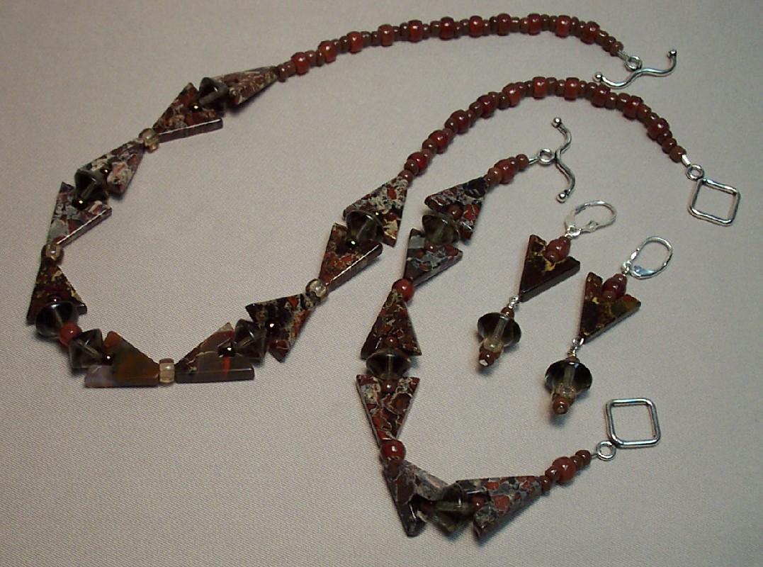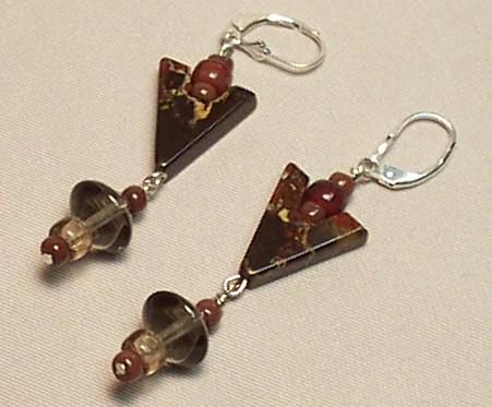 Braciated Jasper V shape 16/18mm, saucer glass 5mm. Czech glass beads. Leverback earrings. Sterling