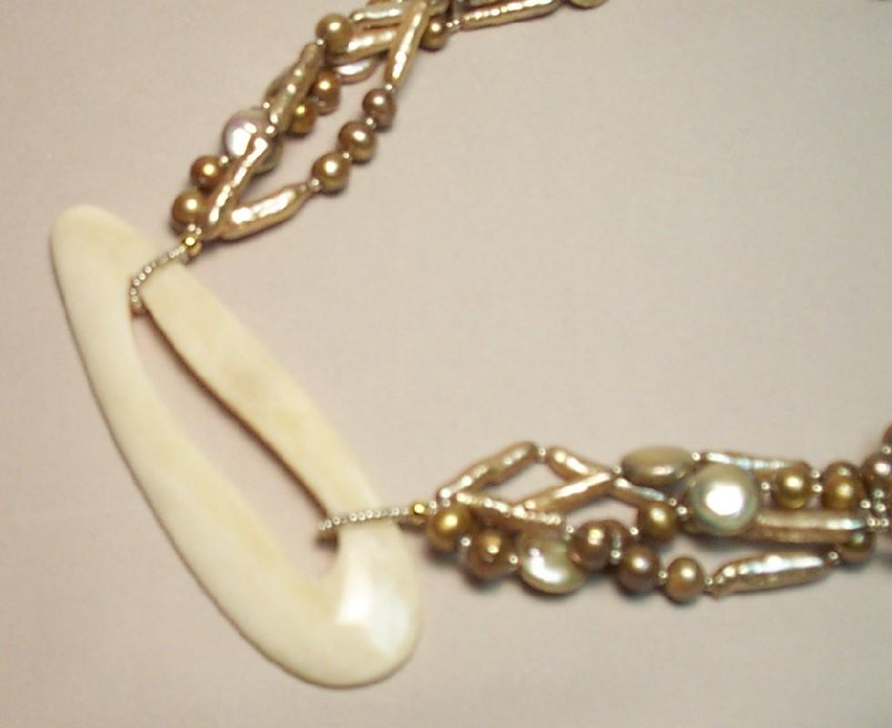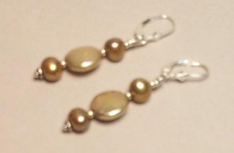 Center 4 1/2 x 1 1/4 inches, freshwater pearls. Leverback earrings. Sterling