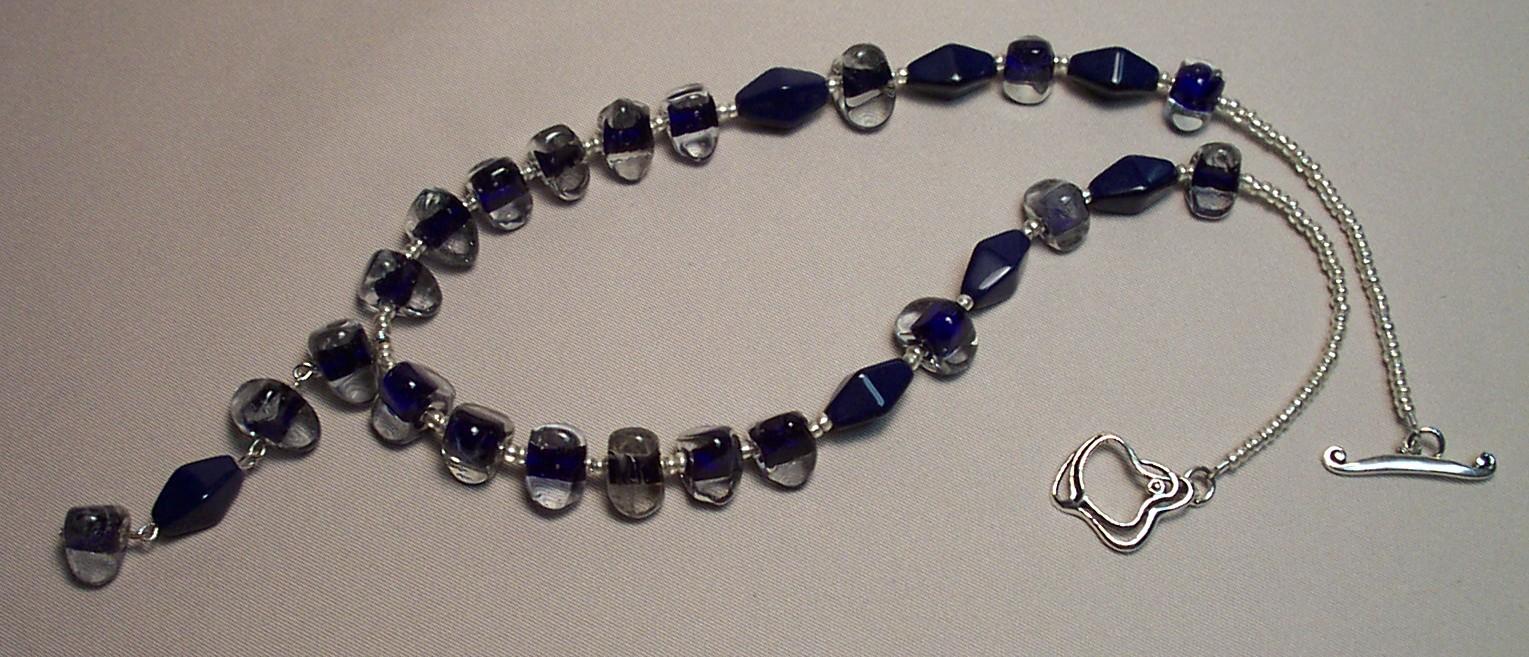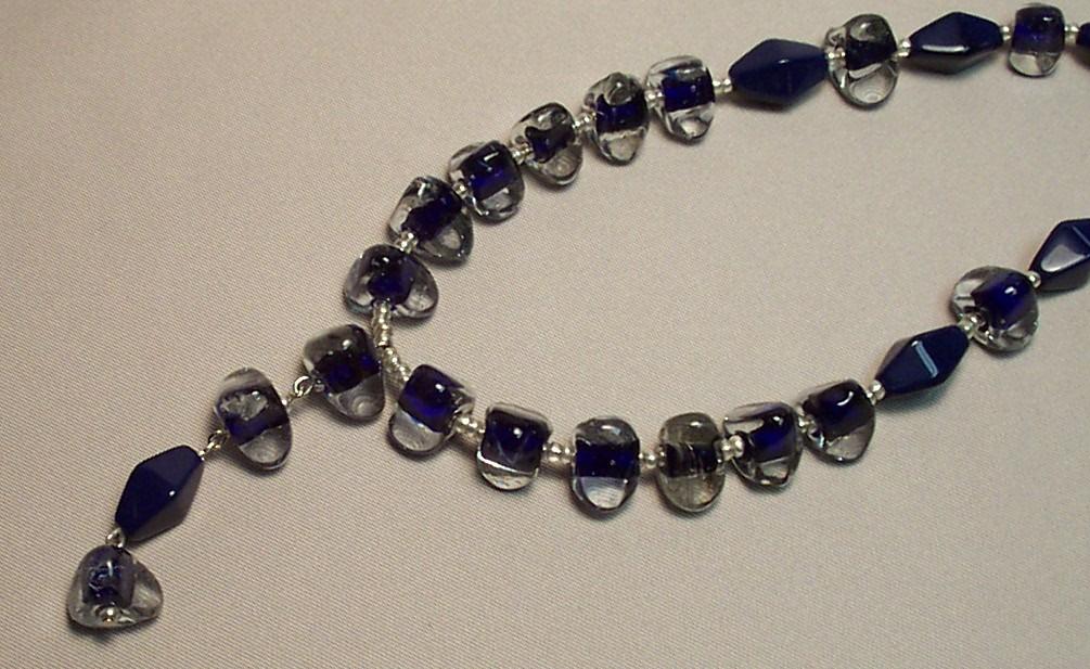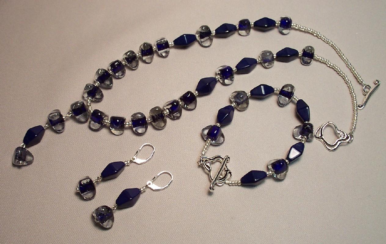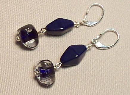 Glass beads. Tri-beads 12mm, faceted ovals 8/15mm. Leverback earrings. Sterling.