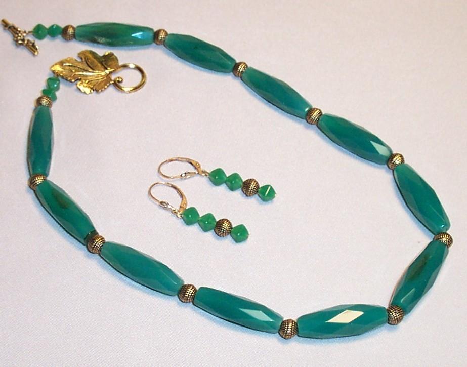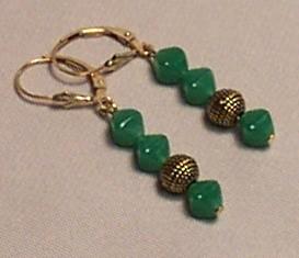Emerald faceted agate, 30/10mm. Leverback earrings. G.F.