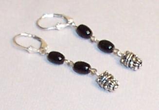 Center 40/32mm, cubes 7/7mm, rounds 5/6mm. Freshwater pearls,4mm, Czech ovals 7/5mm. Leverback earrings. Sterling.