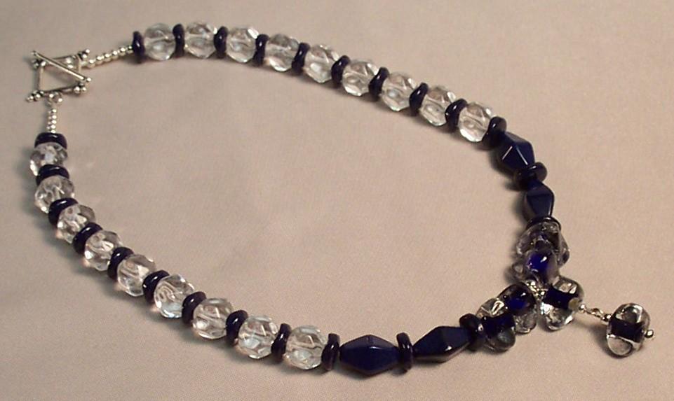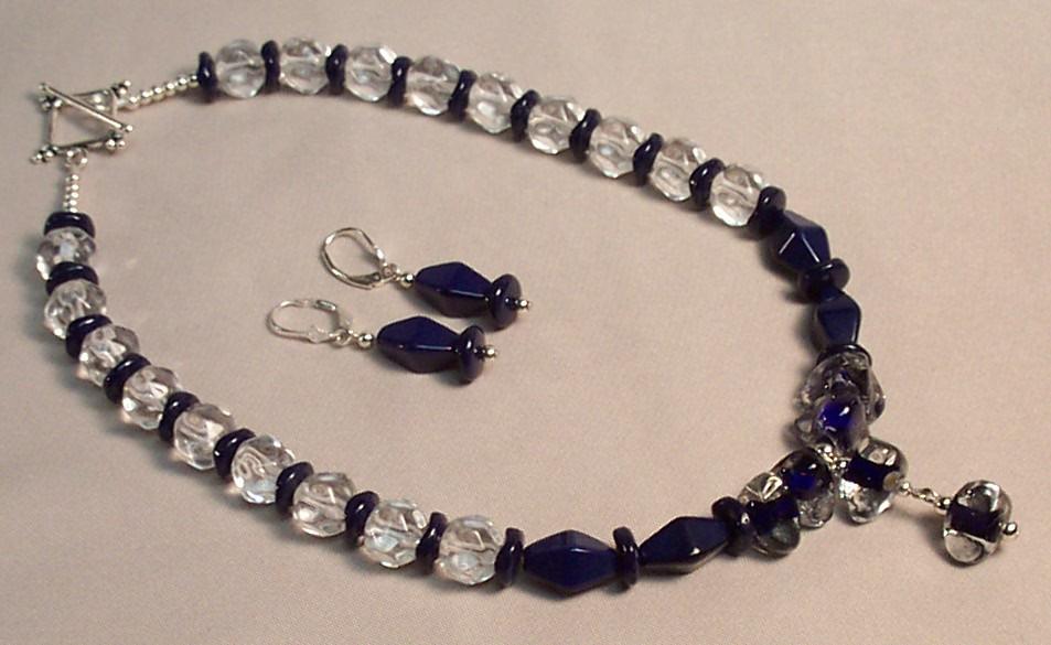 Czech glass. Center irregular 11/7mm, blue 15/7mm, irregular rounds, 10/10mm. Leverback earrings. Sterling