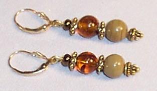 Faceted agate 30/9mm, glass coin 14mm, glass rounds 8mm. Leverback earrings. G.F.