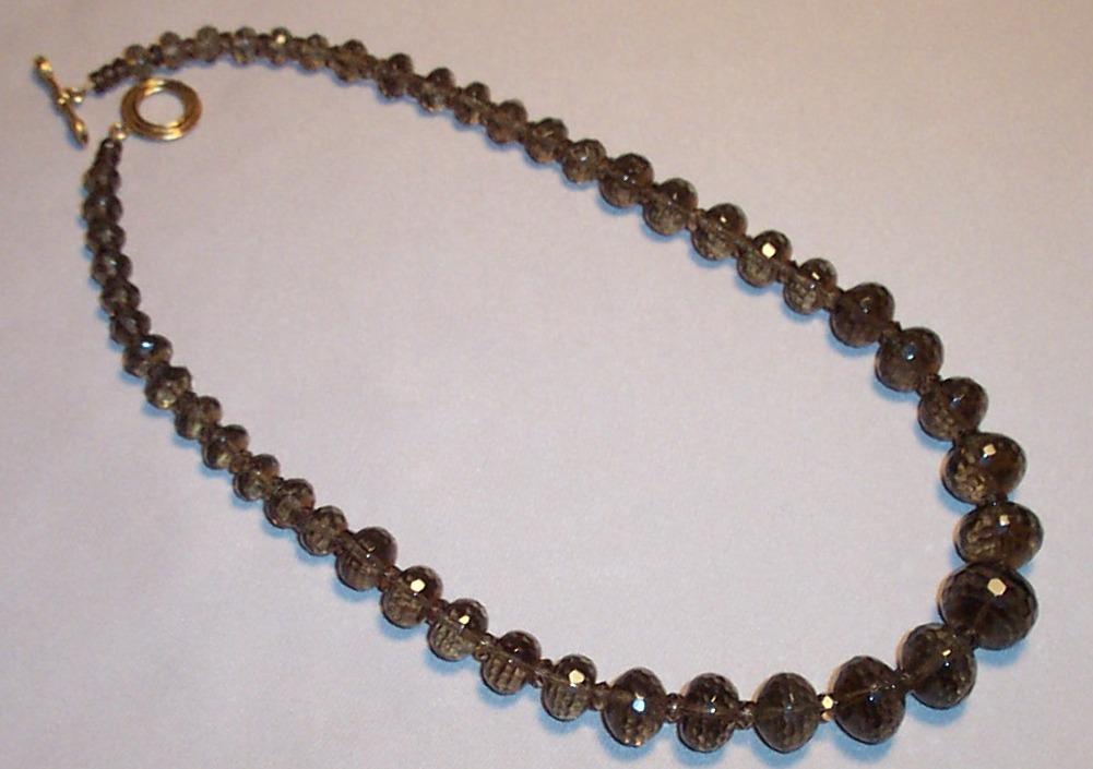 Graduated, faceted smokey quartz. G.F. leverback earrings.