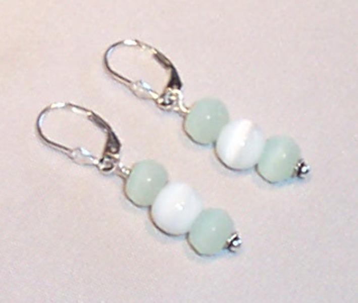 Quarts 15/20mm, ulexite rounds 8mm, faceted rondelle 7mm. Leverback earrings. Sterling