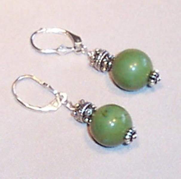 Jade 13/20 mm, sterling 10/10mm, 8/12 mm, 5/10 mm. Leverback earrings. Sterling