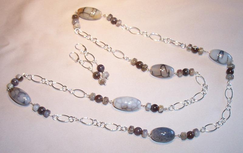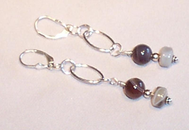Oval quartz 15/30mm, agate rondelle 7 mm, labradorite rounds 5mm, Leverback earrings. Sterling.