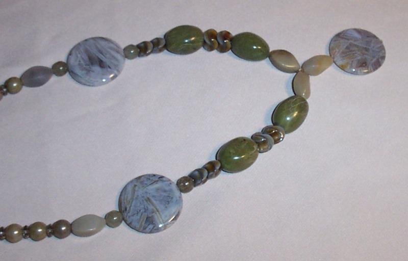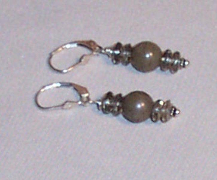 Center 30mm round, jade 15/20mm oval, quartz oval 10/18mm, 8mm glass rounds. Leverback earrings. Sterling
