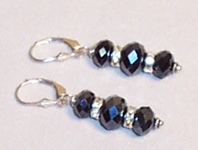 Deep blue faceted crystal rounds 8mm,6mm. Leverback earrings. Sterling.