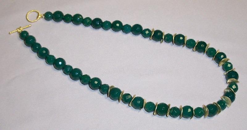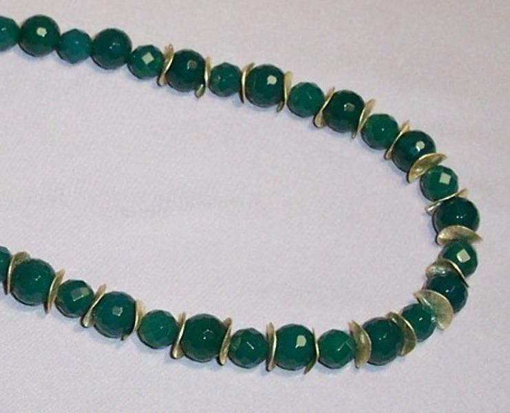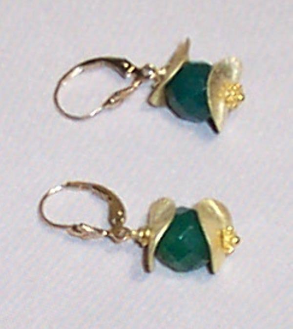 Green agate faceted 10mm, goldtone disks. G.F. Leverback earrings.