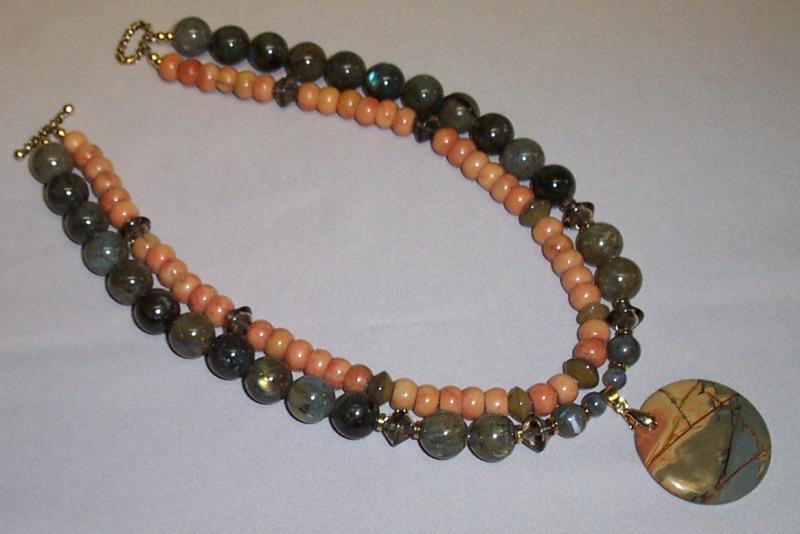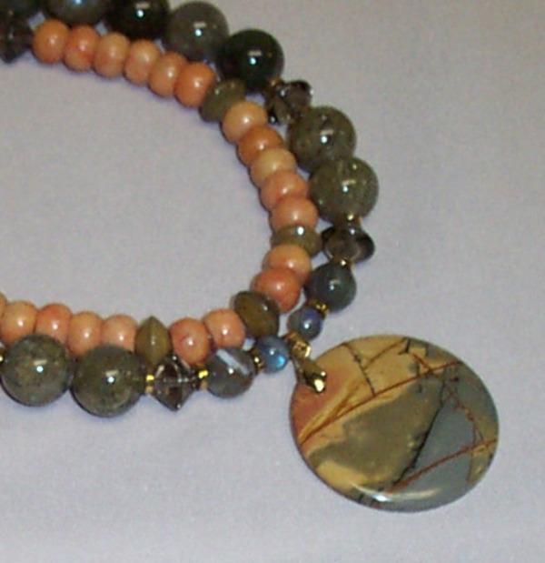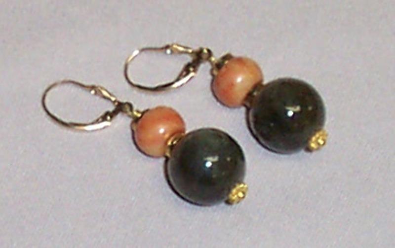 Jasper center 40 mm round, 10 mm round laboriate. G.F. leverback earrings.