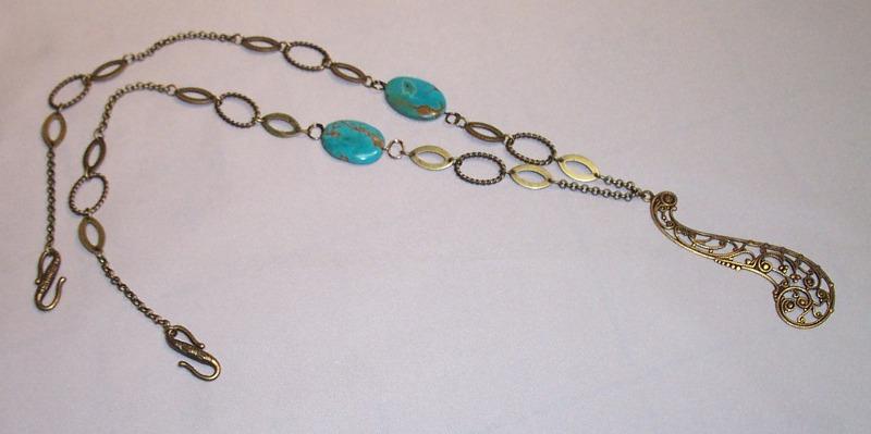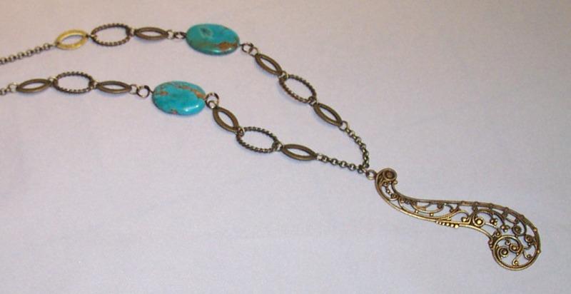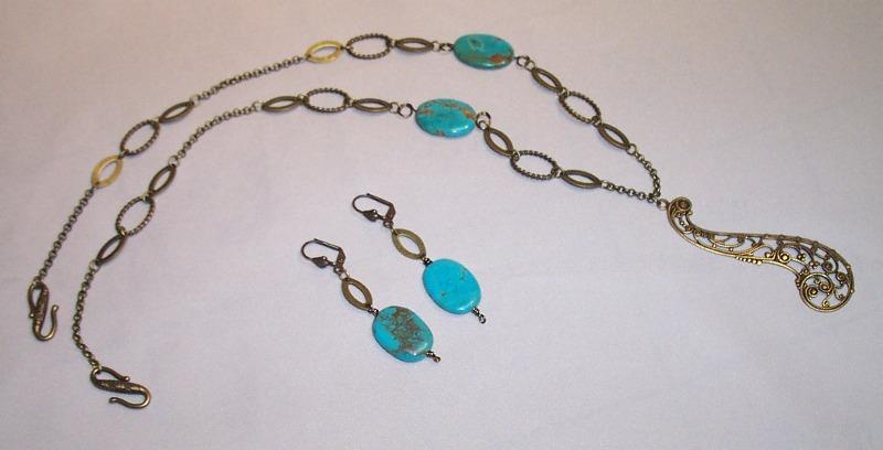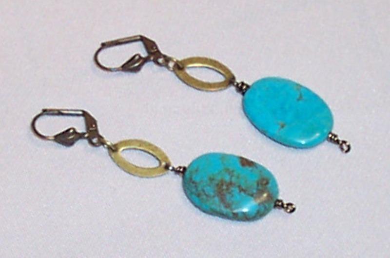 Antique brass, turquoise. Leverback earrings.