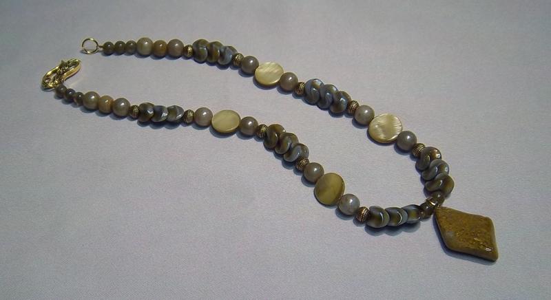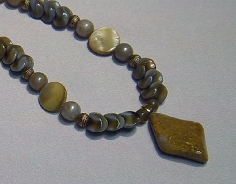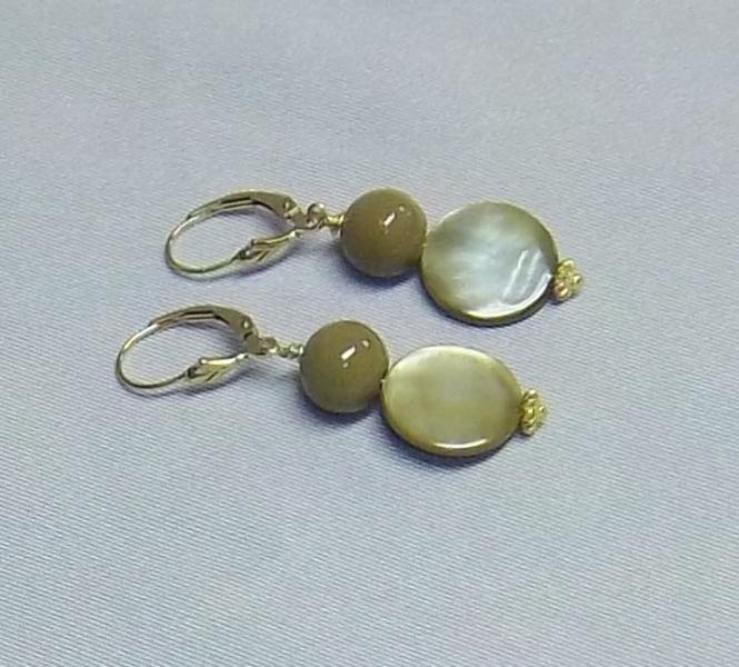 Jasper, Czech glass, shell. Leverback earrings G.F.