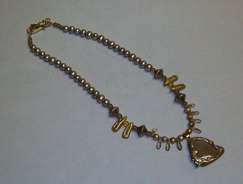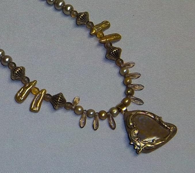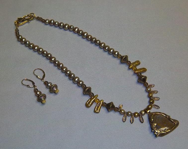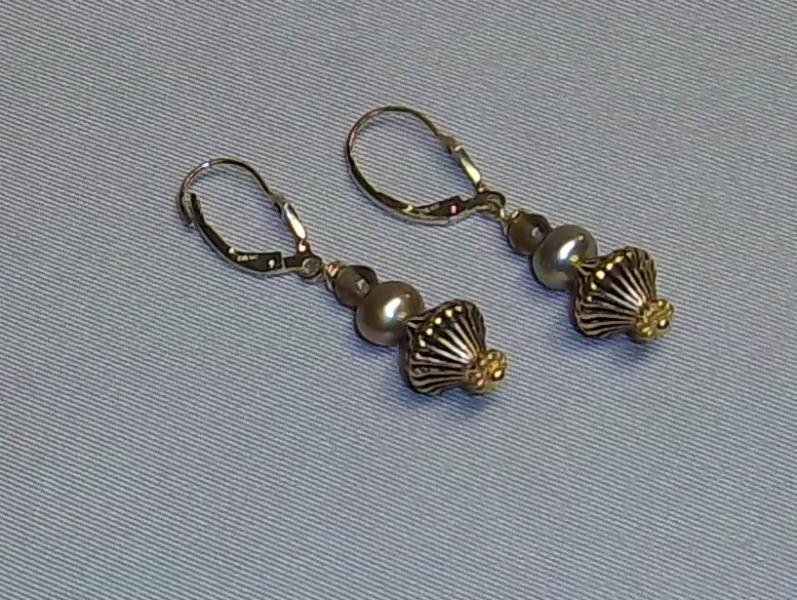 Jasper, fresh water pearls, glass. Leverback earrings. G.F.
