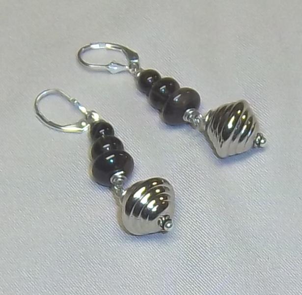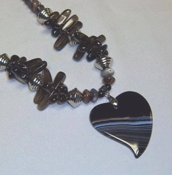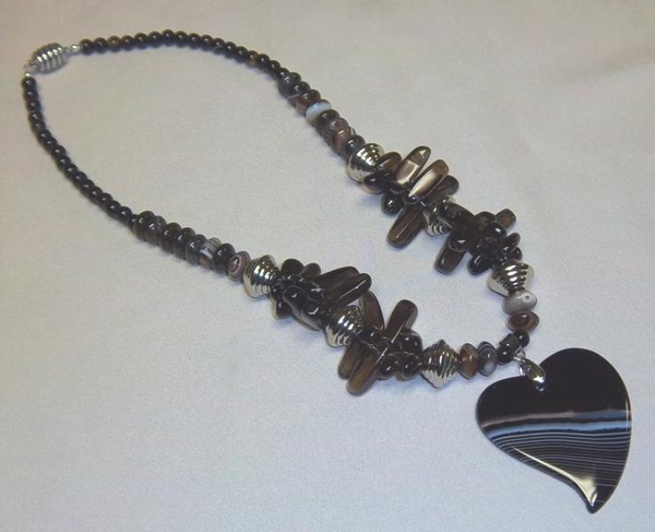 Agate heart, smoky quarts, agate rounds and rondelles. Clasp, leverback earrings, sterling