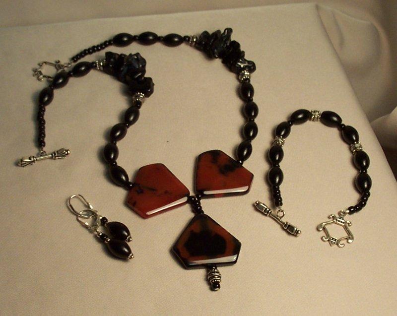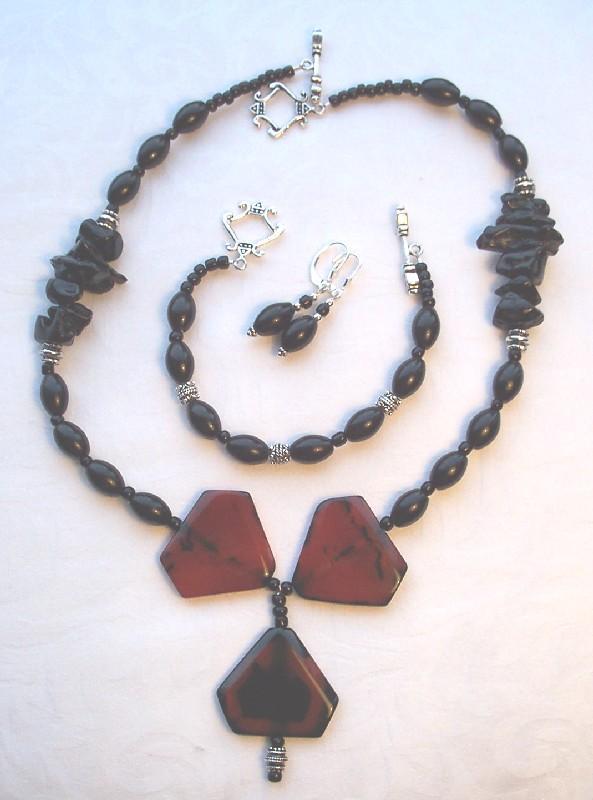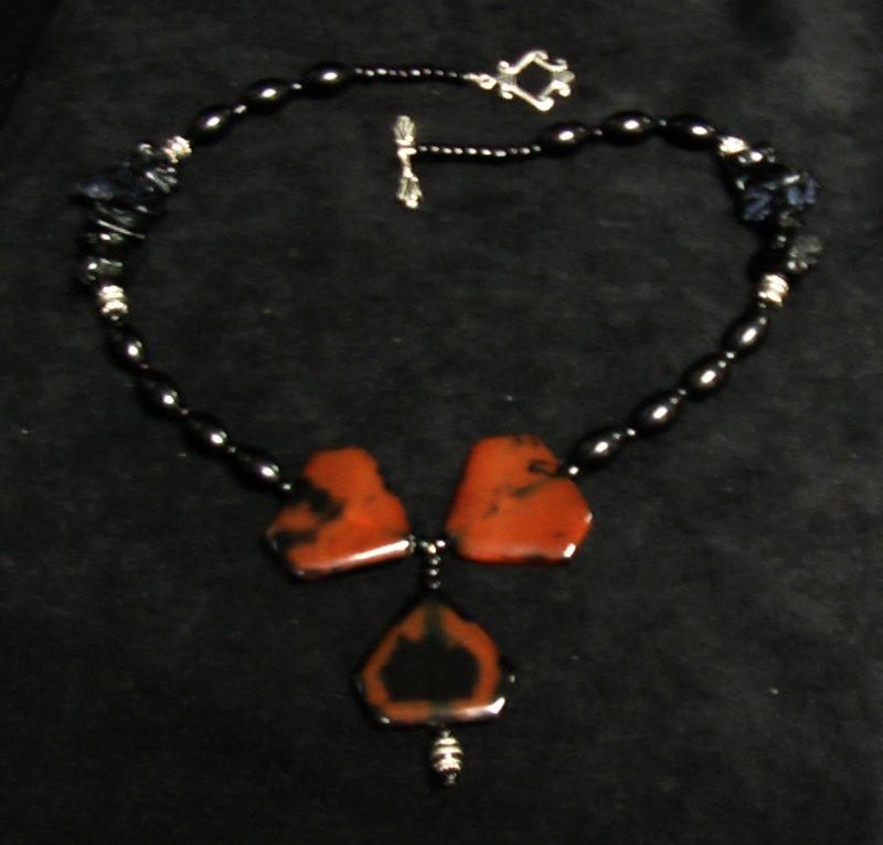 Carmillian 35/29mm, black onyx oval 12/8mm, meteorite irregular 15/10/mm. Leverback earrings. Sterling.