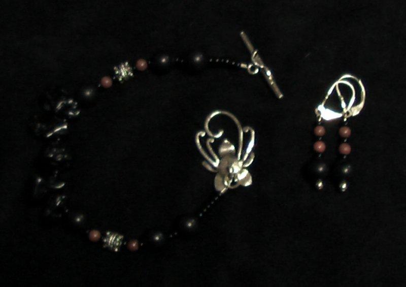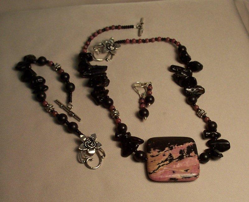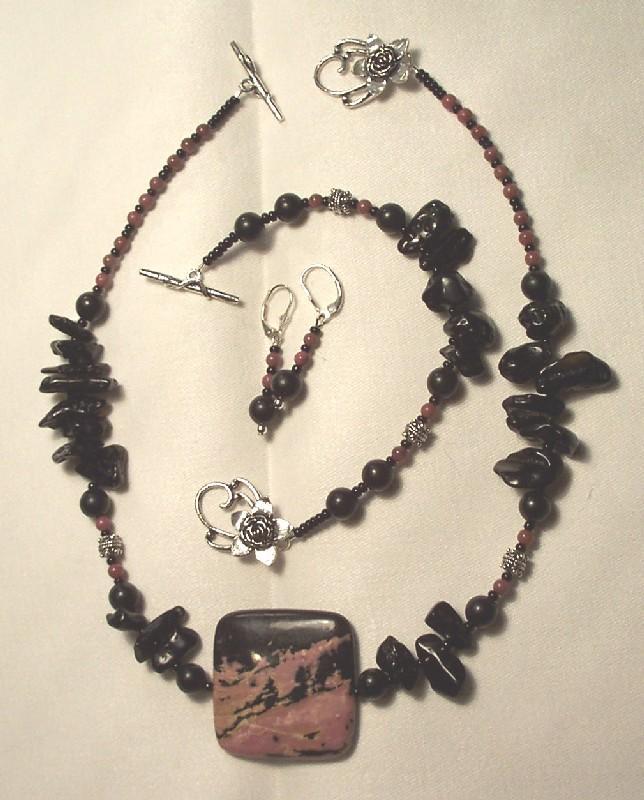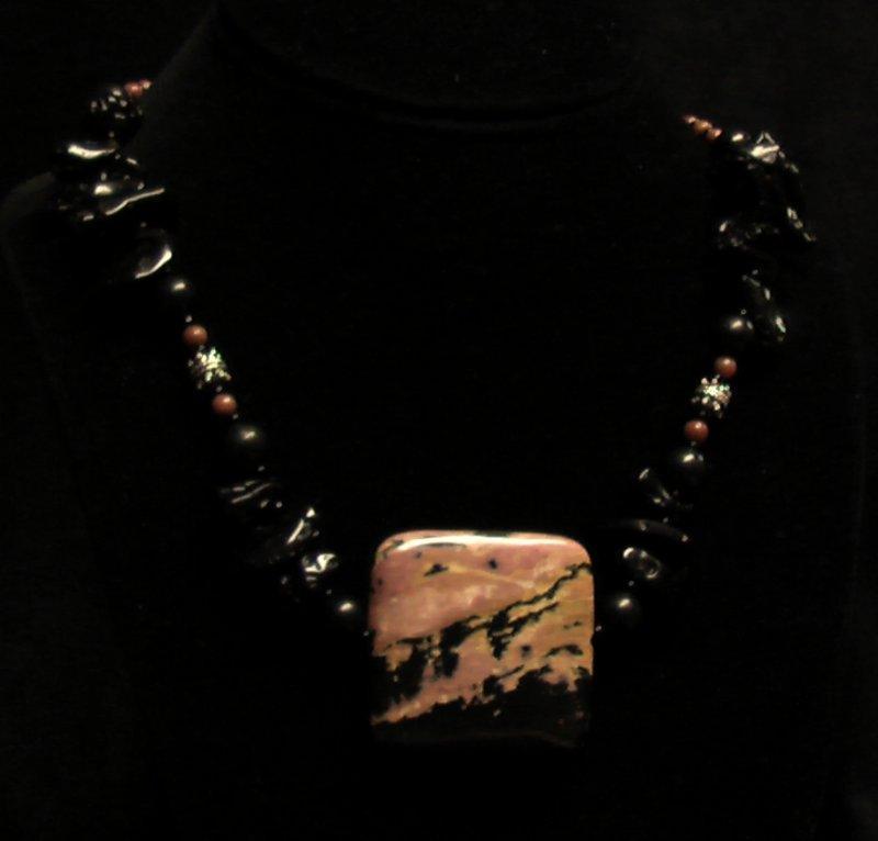 Jasper center 48/48mm, irregular meteorite 13/6mm, round horn 8mm, round jasper 5mm. Leverback earrings. Sterling.
