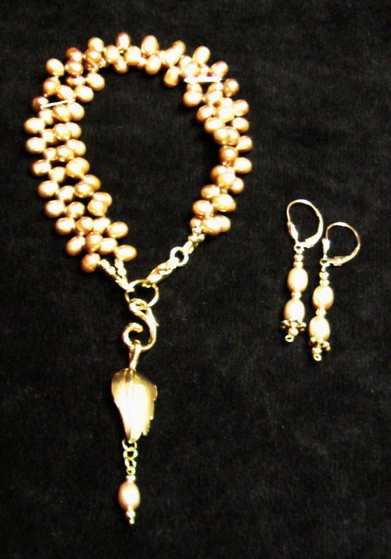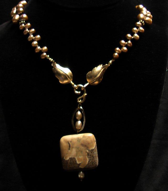 22" necklave with Jasper center stone and freshwater pearls. 8" Bracelet included. GF Leverback earrings.